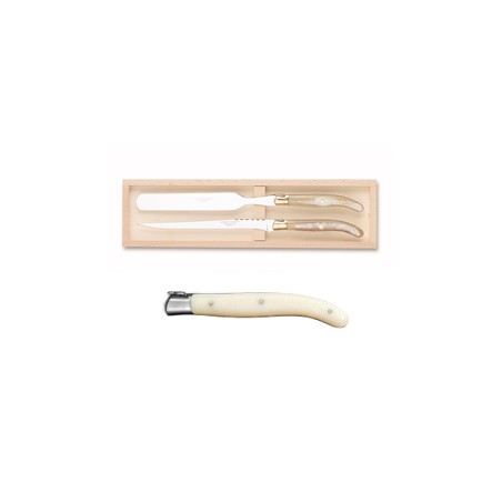 The handle of these knives is available in ivory resin. It is decorated with a stainless steel bolster.